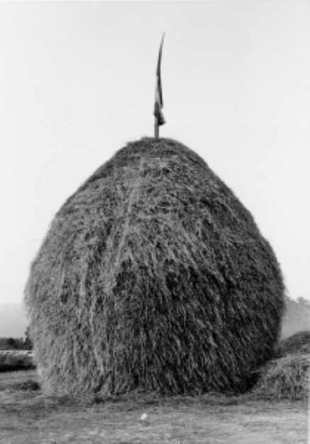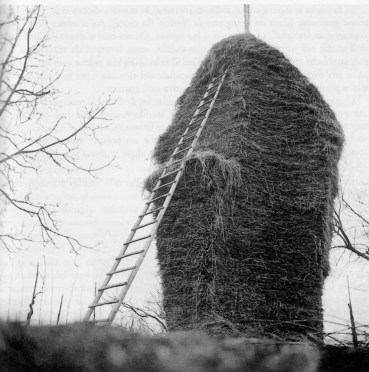 Il fieno doveva intrecciarsi, come una tela. Più si saliva su di altezza e più il pagliaio si restringeva, assumendo la forma di un cono e da ultimo diventava talmente alto che il bisnonno Guido doveva scendere con una scala lunghissima. Il fieno veniva così conservato per nutrire le vacche e i buoi durante l’inverno. Costruire un pagliaio era un’arte e un errore poteva compromettere la conservazione del fieno. Un pagliaio ben fatto era impermeabile e il fieno, per conservarsi bene, doveva diventare molto compatto tanto che per toglierlo usavano il tagliafieno.