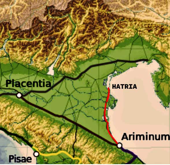 Separandosi dalla Via Aemilia, poco oltre Ariminum, la Via Popilia costeggiava l’Adriatico seguendo lo stesso corso dell’attuale SS16. Oltre il Rubicone transitava sul ‘tombolo’ della laguna di Ravenna, fino a Classis e Ravenna. Ravenna era situata su una striscia di sabbia che separava la sua laguna che dall’altezza di Cesena giungeva fino alle Valli di Comacchio. Ravenna era, secondo la tradizione, una città degli Umbri, sorta su isole lagunari al margine meridionale dell’antico delta del Padus. La città iniziò la sua crescita in un modo forse analogo a quello della più giovane Venezia: i popoli della zona, Etruschi e Umbri dei centri rurali dell’attuale Romagna, devono aver cercato rifugio nelle capanne degli isolotti lagunari, fra i fitti canneti durante l’invasione gallica. … continua a leggere Via Popilia: Rimini-Hatria