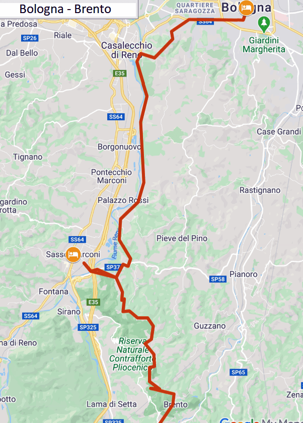 Bologna – Brento: km 31,8 tempo di percorrenza ore 8.40