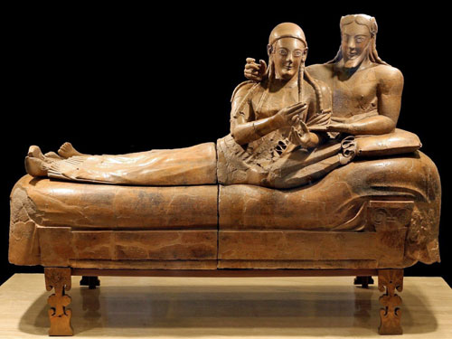 Intorno alla metà del VI secolo a.C. nelle botteghe chiusine ha inizio la produzione delle statue cinerario in pietra che continuerà fino alla prima età ellenistica.