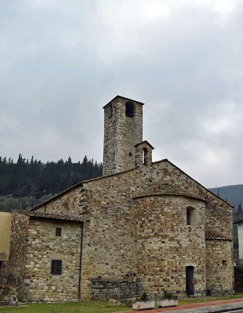 Come tutte le pievi che sorgevano in prossimità di grandi vie di comunicazione e dei passi al fine di accogliere gli abitanti disseminati nel territorio circoscrizionale o i pellegrini che transitavano su assi viari importanti o lungo i cosiddetti diverticoli ovvero le diramazioni dalla viabilità principale, anche la nostra sorse in prossimità della confluenza tra il torrente Carza e il fiume Sieve ove era un guado e sulla direttrice viaria che portava al Passo del Giogo. Una posizione quindi importante che ne avrebbe determinato l’espansione che ne rese necessario l’ampliamento una ventina d’anni dopo.
