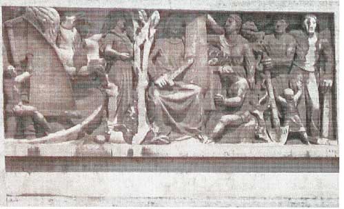ll rivestimento e in travertino e la balaustra, costituita da tre pannelli del medesimo marmo, ospita pregevoli bassorilievi raffiguranti le varie fasi della lavorazione del tabacco, opera del maestro Coccia.