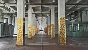 L’intero complesso architettonico a pianta trapezoidale è costituito da tre corpi di fabbrica realizzati in cemento armato con ambienti per la lavorazione e magazzini per lo stoccaggio.