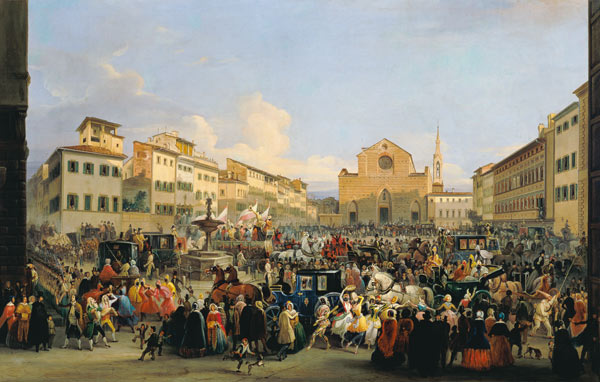 Ancora una rappresentazione di una festa, in questo caso del carnevale in piazza Santa Croce: