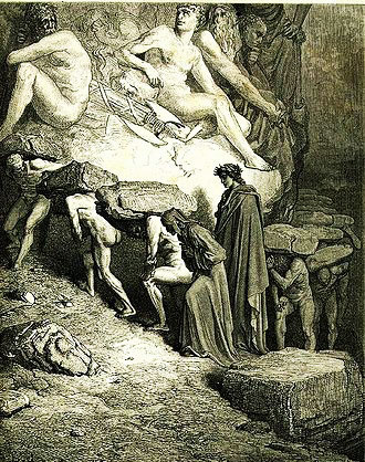 In un ambiente più sereno, nell’XI canto del Purgatorio, tra i superbi condannati a camminare con un masso sulle spalle che la cervice… superba doma, insieme a Omberto Aldobrandeschi e Oderisi da Gubbio, Dante incontra Provenzano Salvani comandante dell’esercito di Siena:
