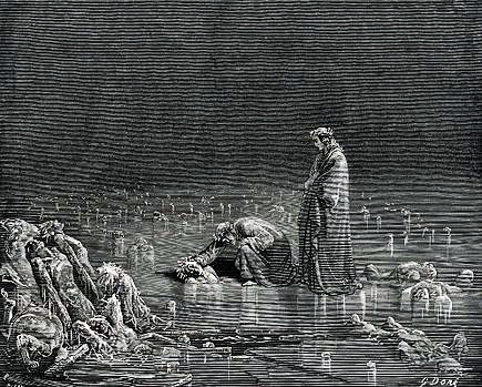 Ma in uno dei luoghi più oscuri dell’Inferno, nell’Antenora fra i traditori della patria immersi nel Cocito, un grande lago ghiacciato formato dai fiumi infernali, dalla cui superficie emergono le teste dei peccatori, Dante incontra Bocca degli Abati, il comandante fiorentino che, secondo la tradizione, tradì i suoi tagliando con un colpo di spada la mano di Jacopo de’ Pazzi il porta insegne dei guelfi facendo cadere in tal modo lo stendardo; ciò provocò la dispersione dei guelfi e ne determinò la sconfitta. Volontariamente o no Dante inciampa sulla testa del traditore provocandone la reazione:
