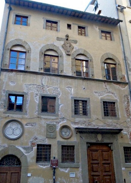 Il Palazzo dell’Arte dei beccai era infatti l’ex Palazzo dei Capitani di Orsanmichele. In alto lo stemma dell’Arte, oggi sede dell’Accademia delle Arti del Disegno.