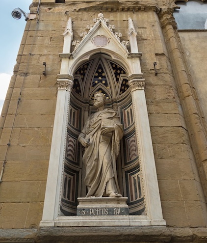 Nei pressi della Chiesa di Ognissanti si teneva il mercato degli animali mentre il macello era dislocato nelle viuzze adiacenti via Santissimi Apostoli. Fu proprio per evitare questo trasporto maleodorante degli scarti della macellazione fino al greto del fiume, che fungeva da felice scarico delle immondizie grazie alle sue acque fluenti. Proprio per questo intorno alla metà del Quattrocento i beccai furono trasferiti sul Ponte Vecchio dal quale lo scarico sarebbe stato più agevole e senza trasporto per le strade cittadine… E lì rimasero fino alla fine del Cinquecento quando cedettero il posto all’arte degli orafi che ancora oggi ne occupano le preziose, in tutti i sensi, botteghe. È degli inizi del Quattrocento l’acquisto del Palazzo in via Orsanmichele di fronte alla chiesa omonima, monumento simbolo delle Arti fiorentine che, tra i vari stemmi, conserva quello dei Beccai e la nicchia con la statua del loro santo patrono, San Pietro Apostolo, attribuita al giovane Brunelleschi e datata 1425.
