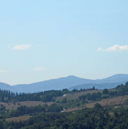 Siamo in Casentino in un paesaggio suggestivo, verde, dai dolci declivi dove vigne e olivi insieme ad una macchia verdeggiante punteggiata di cipressi svettanti e torri e antichi manieri si susseguono a perdita d’occhio. Scorci indimenticabili che rimasero impressi nella memoria del nostro falsario e che Dante attraverso di lui ripropone rendendo omaggio a questa bella terra da lui conosciuta e visitata più volte: