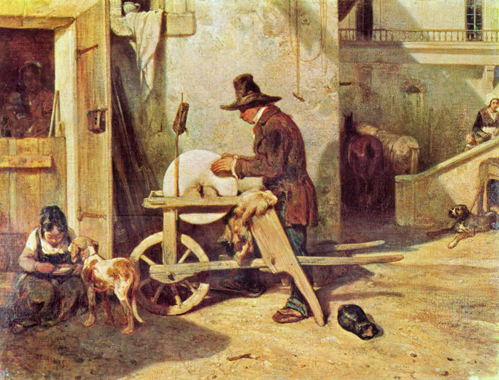 Tra gli ambulanti non poteva mancare l’arrotino che con la sua mola rifaceva il filo a tutte le lame che lo avevano perso; anche oggi si sente ogni tanto per le strade della città il suo richiamo ma viaggia in automobile e usa una registrazione su nastro per richiamare l’attenzione… E un tempo c’erano anche i venditori di frutta, ma non al chilo, ma a pezzo come non si poteva più fare già allora da tempo perchè la vendita era a peso: “due arance per una palanca!” gridavano allegramente mentre offrendo la loro merce ne decantavano le virtù. Una palanca, sottolinea l’autore, parola di cui si è perso anche il significato: era una moneta di rame usata anche in Veneto e in Liguria e al tempo valeva 5 centesimi. A maggio e a giugno non mancavano i venditori di ciliege belle a vedersi insieme ai “fragoloni”.
