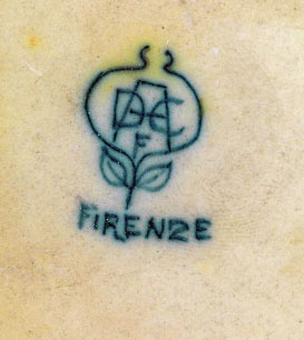 Per tentare una nuova forma di ceramica, fuori dai modelli decorativi e ispirata invece al nuovo stile floreale che ormai pervadeva l’Europa, collaborò con il cugino Chino per la sperimentazione tecnico-chimica. Il marchio della fabbrica era una melagrana da sola o con due mani intrecciate o la scritta “Firenze” riportata sotto a simboleggiare un forte sodalizio tra i soci.