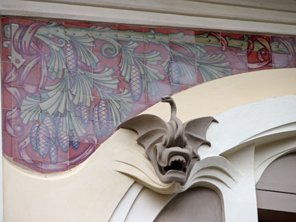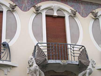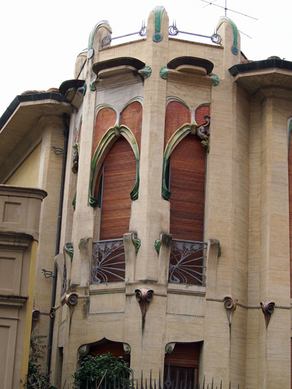Firenze villino Lampredi via Giano della Bella 13, la facciata, particolare del drago alato a sostegno del balconeVillino Lampredi, particolare delle decorazioni floreali Villino Lampredi, particolare del balconeVillino Lampredi particolare, il portoneVillino Lampredi particolare della finestraVillino Lampredi particolare della decorazione della finestraVillino Lampredi i motivi floreali dei ferri battutiVillino Broggi, torettaVillino Broggi, un balconeVillino Broggi, particolare delle decorazioni in ferro battutoVillino Broggi, finestra con festone e dragoVillino Lampredi il portoneCasa Antonini, un balconeCasa Antonini decorazione sulla facciata