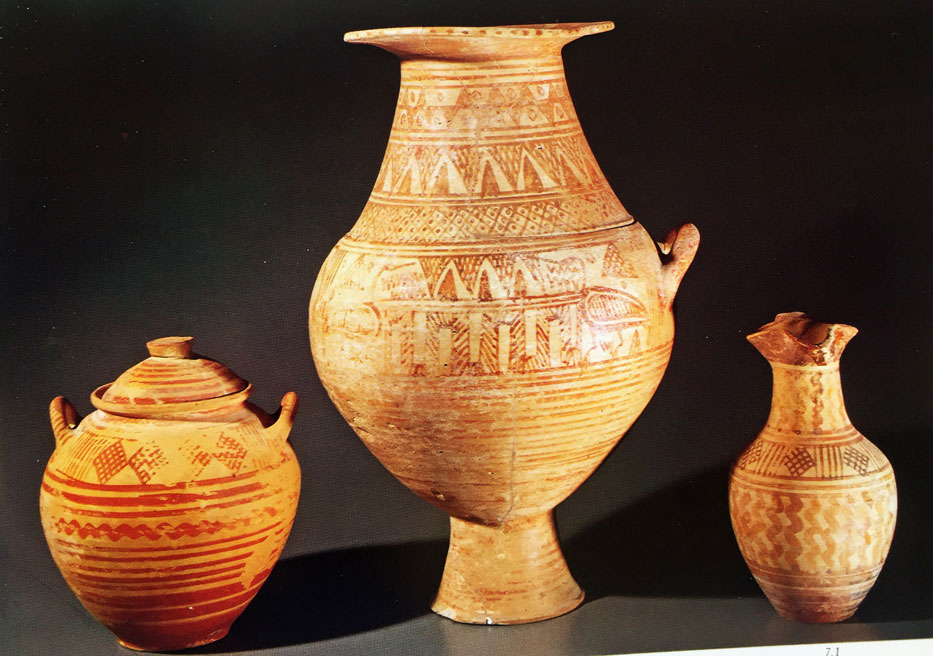 Alcuni dei vasi etruschi rinvenuti negli scavi archeologici di Vulci