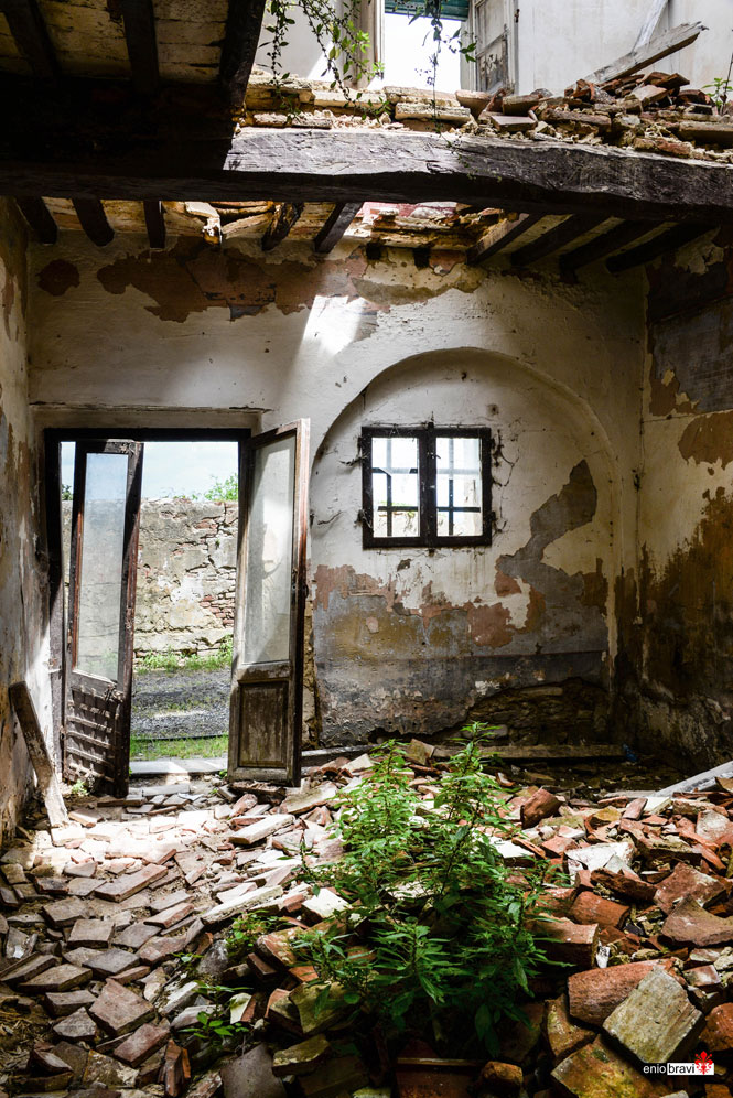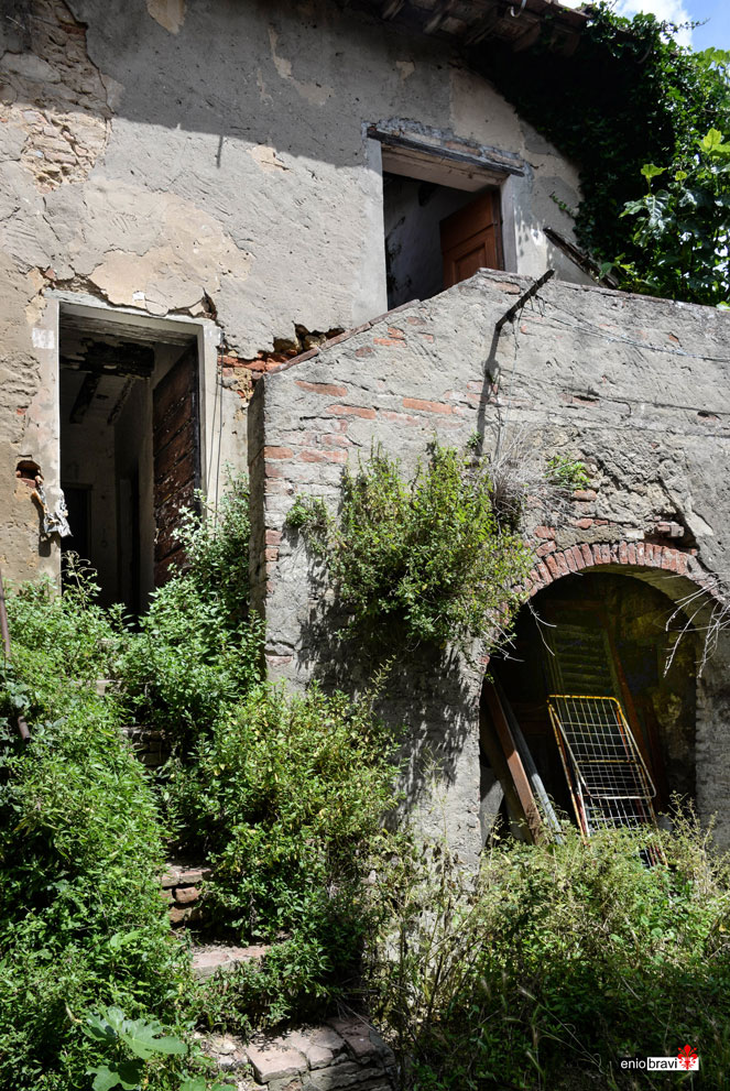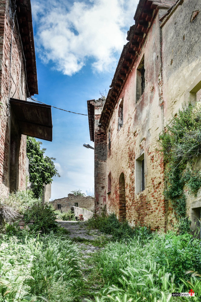 “Si entra per un ponte, probabilmente l’antico ponte levatoio e quindi la porta è una porta di un castello. Infatti Toiano è un’antica fortezza contesa tra i pisani e i fiorentini nel rinascimento per la sua posizione strategica e per l’altezza. Alla fine vinsero i Medici. Il Borgo ebbe la sua massima espansione alla metà dell’800 con più di 500 abitanti. Poi la crisi, l’esodo durante il boom del ’60, durante il quale poche decine di contadini scesero a valle in cerca di lavoro nelle ricche industrie della Valdera. Fra queste la Piaggio: la vespa costruita anche con la fatica degli ex abitanti di Toiano. A Toiano mancavano lavoro, acqua e trasporti. e così divenne la città fantasma” (da Francesco Pergola “Toiano la città fantasma” Aletti Editore 2013)