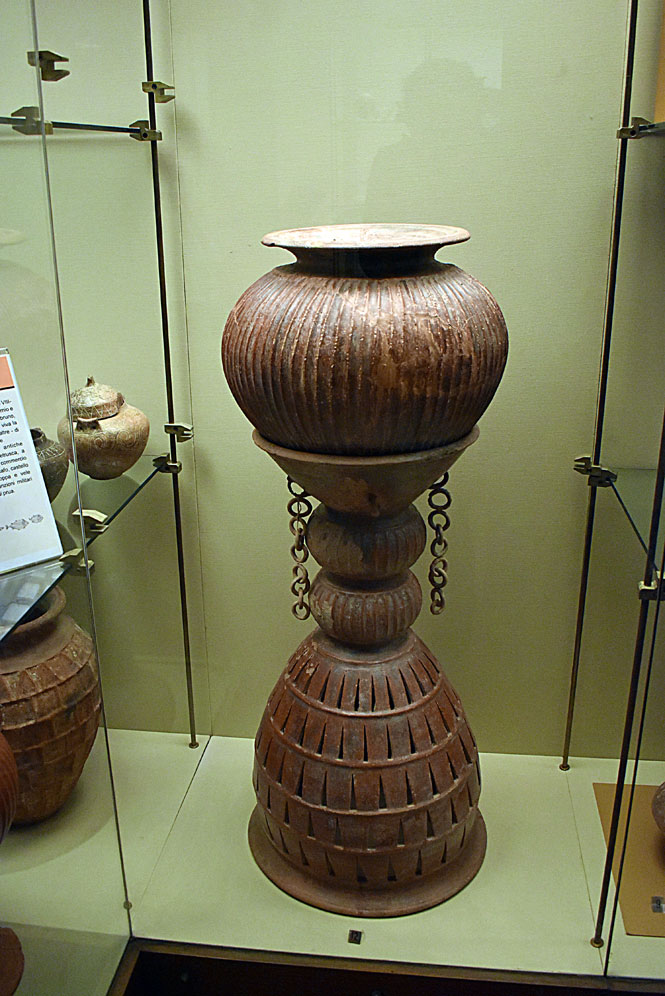- al primo piano una rilevante collezione di reperti vascolari riferibili, in ordine di tempo, dal periodo Villanoviano a quello Romano, che evidenziano l’evoluzione della pittura greca ed etrusca: i vasi greci ad esempio provenienti da Corinto (VII-VI secolo a.C.) e i bucheri, la tipica ceramica etrusca o le ceramiche dell’Attica (VI secolo a.C.); ma anche monete etrusche in bronzo e oro, risalenti al periodo tardo imperiale e rinvenute nella colonia di Gravisca, e manufatti di produzione locale in ceramica e metallo (specchi, suppellettili e balsamari).