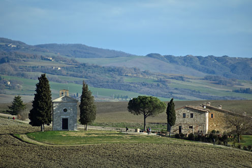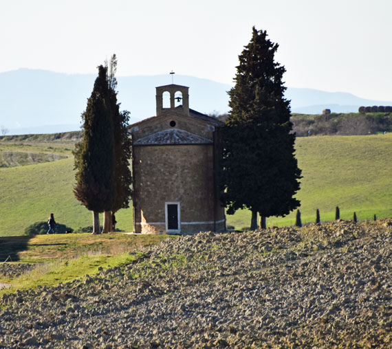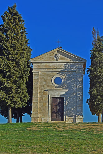 Sulla strada che da San Quirico conduce a Pienza, un cartello indica la sterrata che porta alla cappella della Madonna di Vitaleta: provenendo da San Quirico e facendo attenzione alla vostra destra, ecco la segnalata stradetta bianca che devia dalla principale. Dopo circa un chilometro giungerete ad un bivio e, proseguendo alla vostra destra, dopo circa un altro ma a piedi, raggiungerete la meta.