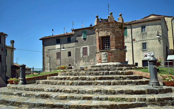 Prima di giungere alla grande piazza della cisterna, sulla destra ci lasciamo la chiesa, di origine rinascimentale, della Madonna del Conforto e giungiamo alla grande cisterna che dall’alto di una scalinata domina lo spazio antistante il centro storico e quel che rimane del castello e delle mura castellane.