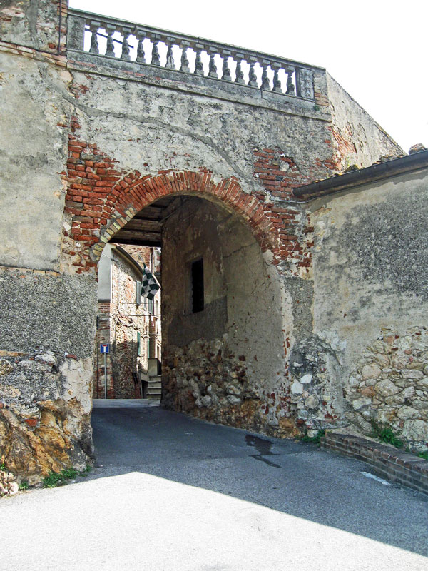 Oggi ne restano infatti solo alcuni tratti come ad esempio accanto alla cosiddetta Porta Piccina. Questo tratto di mura si erge sovrapposto a grossi blocchi di pietra, resti delle mura costruite in età etrusca. Non dimentichiamo che il sito ben si prestava alla nascita di una abitato etrusco lontano come era dalla piana paludosa e in posizione elevata.