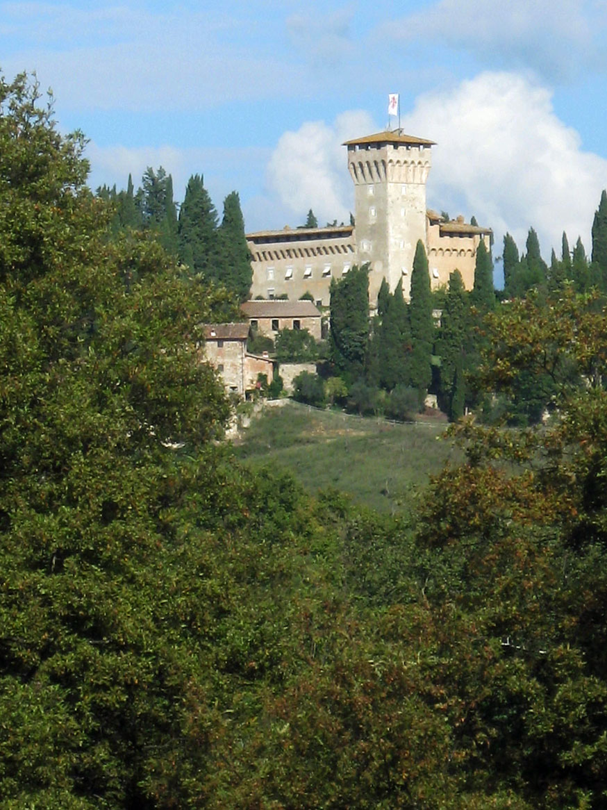 Nel morbido paesaggio toscano, tra cipressi e macchie, occhieggiano turrite fortezze;