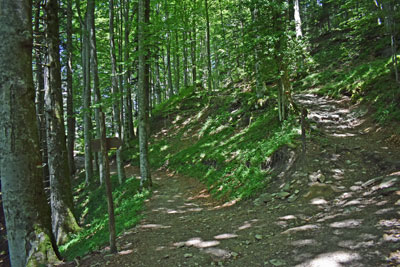 Subito superata la bella Badia che merita una visita, a sinistra una strada conduce al rifugio Fangacci da cui si dipartono vari sentieri. Il luogo è ameno e, nonostante le giornate torride che stanno caratterizzando questo mese di giugno, qui, a circa 1000 metri, si sta bene e si respira un’aria salutare, niente umidità, niente afa.