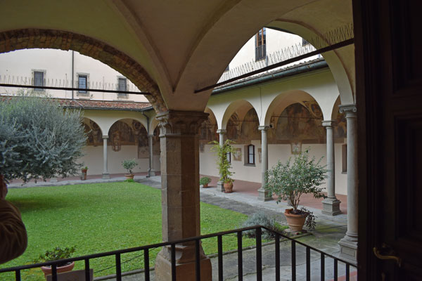Torniamo in chiesa, riattraversando il bel chiostro: lungo la parete laterale a destra un’opera di Botticelli.