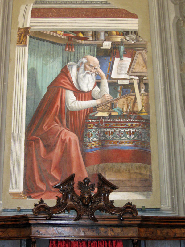 Sant’Agostino nello studio fu realizzato sul tramezzo che dava accesso al coro della chiesa di Ognissanti, in relazione al San Girolamo dipinto dal Ghirlandaio nel 1480.