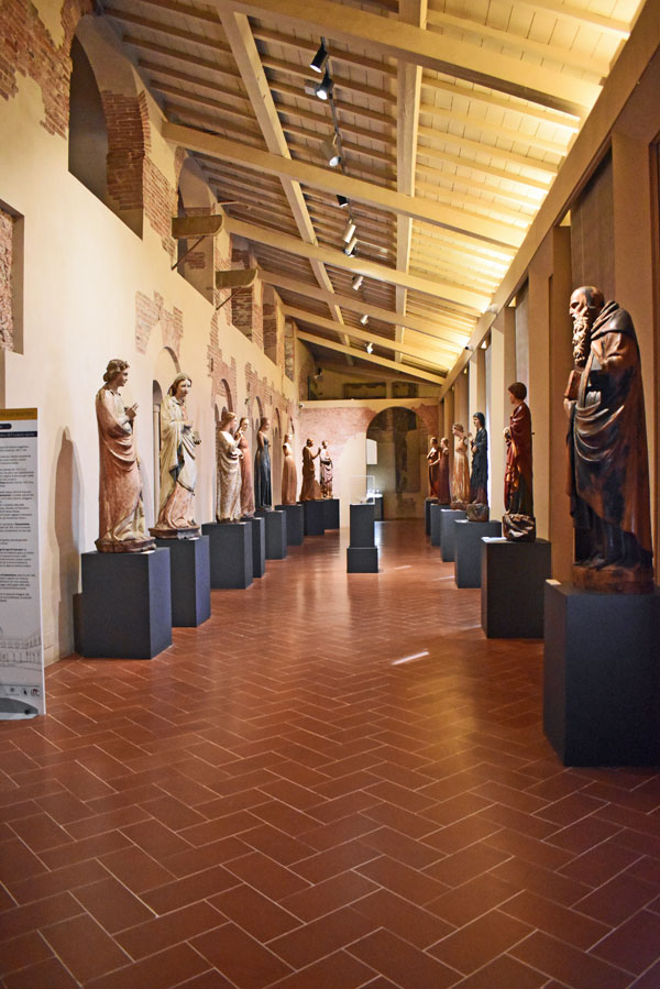San Paolo di Masaccio è l’unico pezzo rimasto di un Polittico smembrato e i cui pezzi sono custoditi tra Londra, Berlino e Los Angeles. Opere di Ghirlandaio di Gentile da Fabbriano, del Beato Angelico, di Benozzo Gozzoli, senza dimenticare le opere di scultura che occupano lo spazio entrando a destra del chiostro: dove si raccolgono i marmi che ornavano l’apparato esterno della splendida Chiesa di Santa Maria della Spina, tra cui le Madonne di Giovanni, di Andrea e di Nino Pisano.