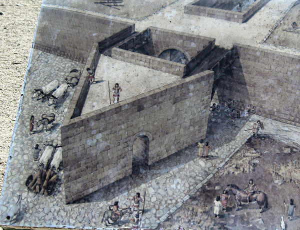 Nel terzo secolo, la fortificazione fu rinforzata in previsione degli attacchi dei Romani che la conquistarono nel 280 a.C. Oggi di quella fortificazione resta ciò che il visitatore incontra nel suo primo accesso alla città: blocchi di tufo rosso con la forma di una V. È quanto resta della Porta ovest, una particolare struttura difensiva che si attaccava alle mura con un avamposto triangolare che all’interno si apriva a Y in modo da costringere il nemico ad aggirare l’ostacolo impedendogli un attacco frontale.