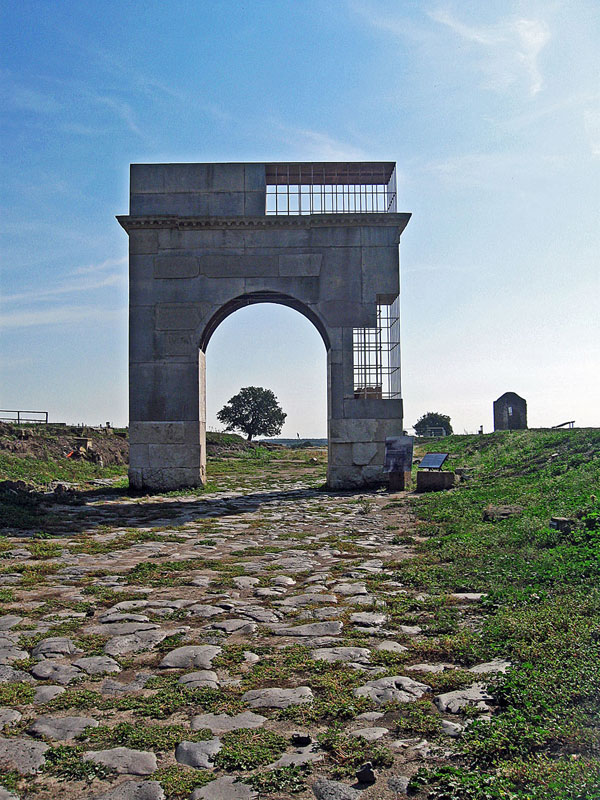 Superata la Porta ovest, proseguendo sul decumano massimo che dalla Porta ovest conduce al tempio grande di Vulci, un arco di trionfo, ricostruito, posto al margine occidentale di quello che fu l’antico foro, ci parla di un questore, edile, pretore, proconsole, curatore delle strade, nonché propretore, come recita l’iscrizione: Publius Sulpicius Mundus.