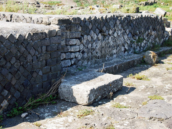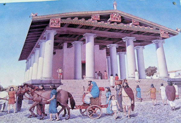 Superato l’arco di Sulpicio ci dirigiamo verso quel che resta del grande tempio edificato nel VI secolo a.C., e in seguito ampliato, dedicato probabilmente a Minerva. Oggi rimane il grande basamento e la ricostruzione nel diorama: le colonne e la copertura erano in legno, successivamente in muratura, con il tetto decorato con statue in terracotta.