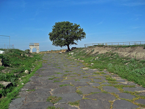 Il fascino che aleggia tra queste antiche pietre lascia il visitatore abbagliato da tanto fasto e grandiosità; non da meno il paesaggio che da qui in avanti accompagnerà tra ampi spiazzi e morbide colline i passi di chi scende verso il fiume seguendo il tracciato del decumano.