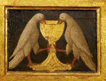 Nella predella, la tavola che costituisce la base inferiore spesso suddivisa in pannelli con scene relative, ancora lo stemma dell’ordine dei camaldolesi.