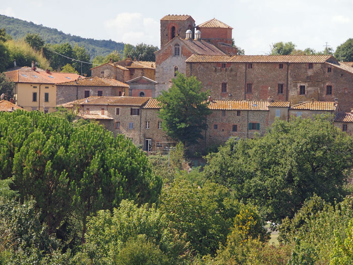 Oggi resta la chiesa che svolge funzioni parrocchiali mentre parte delle antiche strutture conventuali sono inglobate nella canonica. Per accedere alla chiesa occorre attraversare un grande arco a volta, un’antica porta di accesso al complesso abbaziale di cui oggi rimangono la chiesa, la canonica e la chiesetta della compagnia. La chiesa di architettura romanica ha la facciata in pietra alberese.