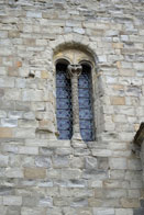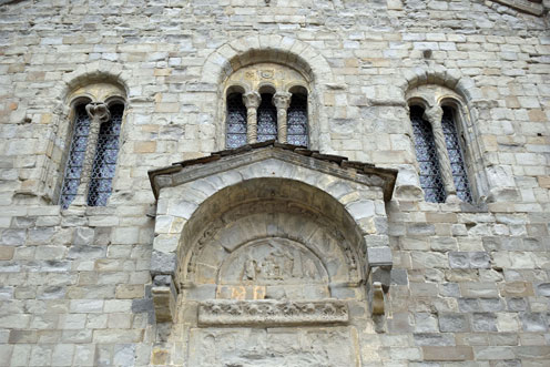 Interessante il bassorilievo, ancora ben conservato della porta laterale sinistra. Raffigura un guerriero armato di scudo, con fregi anche sull’architrave a motivi vegetali.