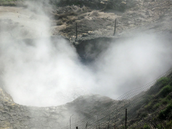 “Qui, un tempo, il visitatore si trovava di fronte ad uno spettacolo sconcertante: le valli erano ottenebrate da densi vapori maleodoranti e dai fianchi delle colline sbuffavano fumarole, mofete, bulicami, pennacchi, soffioni, putizze, solfatare che riempivano l’aria di brontolii e di acida umidità”