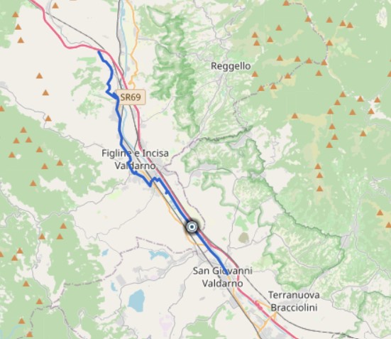 da Firenze a Palazzolo km 23,7 da Palazzolo a San Giovanni Valdarno km 20