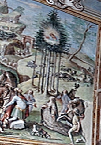 Sulla visione le diverse versioni concordano anche se altre indicano un lume, e uno e trino, apparso al re su un bellissimo albero.