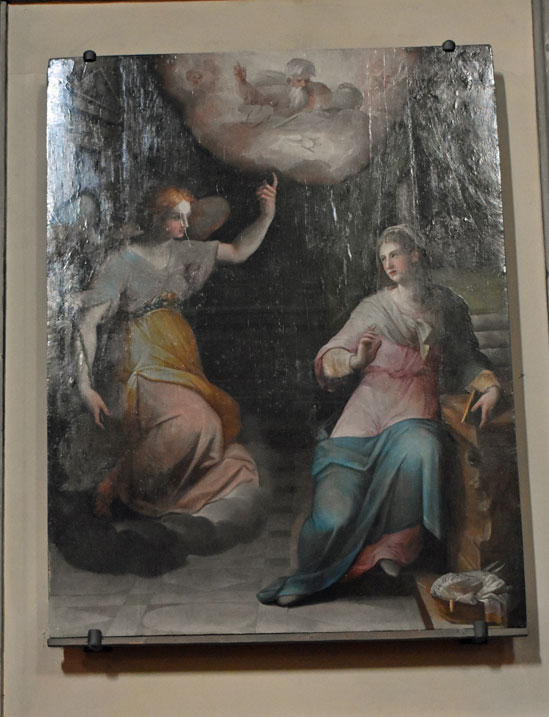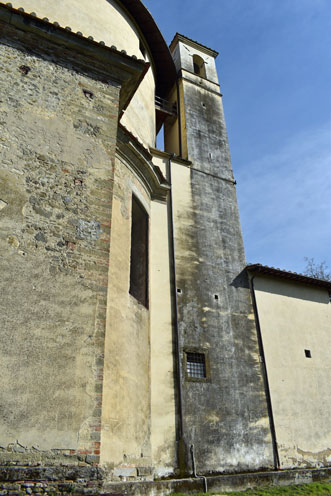 Le ulteriori strutture che percorrono lateralmente l’edificio sono ampliamenti come l’aggiunta della torre che avrebbe dovuto ospitare una campana. Particolare il tiburio, la struttura esterna che racchiude al suo interno una cupola proteggendola, che alto si eleva sulle strutture rettangolari alla base, sovrastato da una copertura su cui svetta una lanterna. L’interno, oggi privo della pavimentazione perché da ripristinare, è sottolineato da otto lesene: si presenta a pianta circolare con tre cappelle; in quella maggiore è alloggiato l’affresco miracoloso. In alto a sottolineare la base della cupola, un’iscrizione: Benedixit te deus in virtute sua quia per te ad nihilum redegit inimicos nostros (Dio ti ha benedetto con la sua potenza, perché grazie a te ha ridotto all’impotenza i nostri nemici). Nella cappella laterale a destra dell’ingresso una Sacra Famiglia con al centro un giovane Gesù tra Maria e Giuseppe attribuita al pittore Stefano Amigoli, mentre l’Annunciazione, che occupava la cappella a destra, è oggi nella chiesa dei SS Jacopo e Filippo attribuita a Giovanni Balducci collaboratore, insieme a Zuccari, degli affreschi del Giudizio Universale in Santa Maria del Fiore.