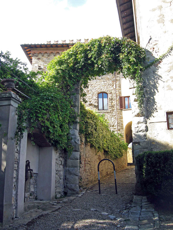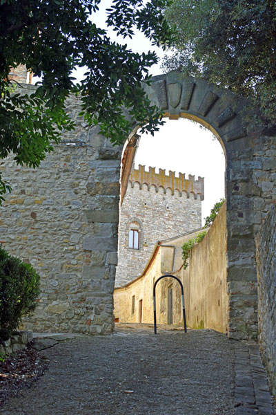 Siamo sopra Rosano nel punto in cui la Sieve confluisce nell’Arno su cui domina il castello molto rimaneggiato in stile neo gotico, ma di cui è ancora visibile e percorribile l’antico circuito murario, a cui si accede attraverso un grande arco in arenaria, che ruota attorno ad un maestoso torrione merlato. Superato l’arco la piccola chiesa di San Michele che conserva opere pittoriche di notevole fattura datate XVI secolo.