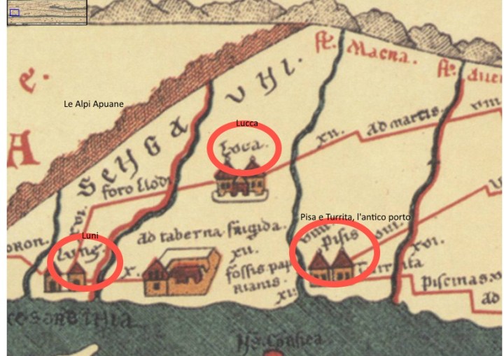La presenza di vie d’acqua, il lago e il mare, la posizione tra Pisa e Lucca e l’antico porto di Luni, ne fecero un punto di snodo che alcuni studiosi del passato hanno ritenuto di identificare con la stazione di posta indicata sula Tavola Peutingeriana con il nome di Fossae Papirianae, oggi non ritenuta altrettanto attendibile. I resti romani rinvenuti sono comunque una presenza tangibile di un sito dal passato storicamente significativo.
