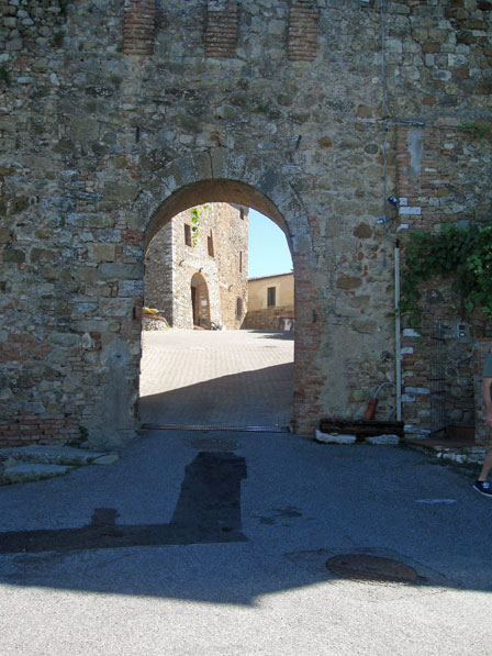 La Porta di Ponente segna l’ingresso al piccolo borgo la cu strada principale gli ruota attorno e, seguendo un percorso circolare, passa dietro al palazzo vescovile aprendosi un una nuova piazza con pozzo, per poi ritornare sulla piazzetta su cui si affaccia.