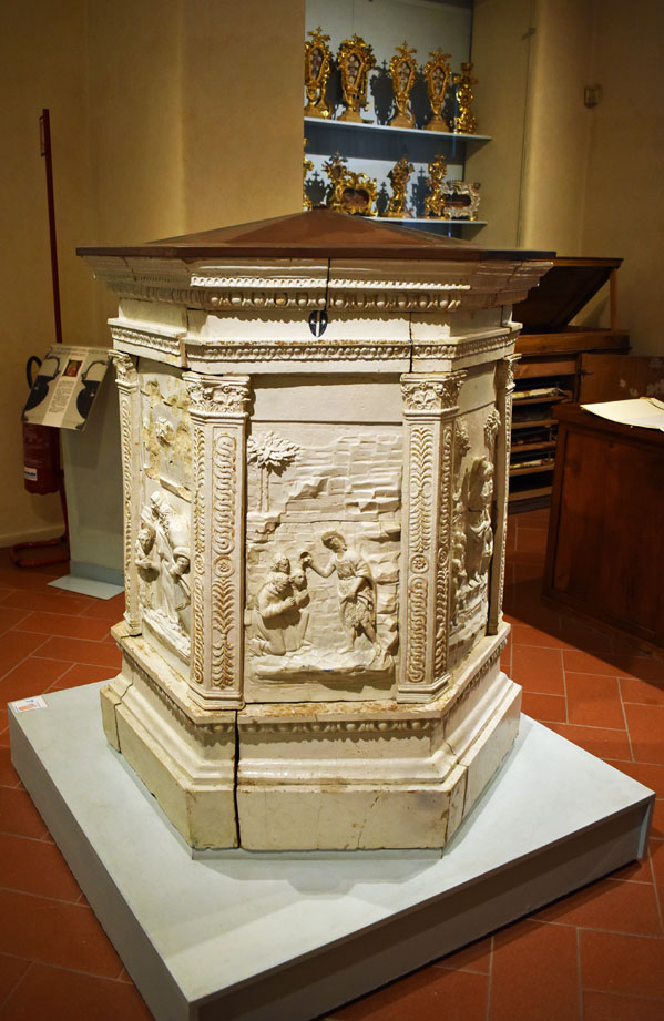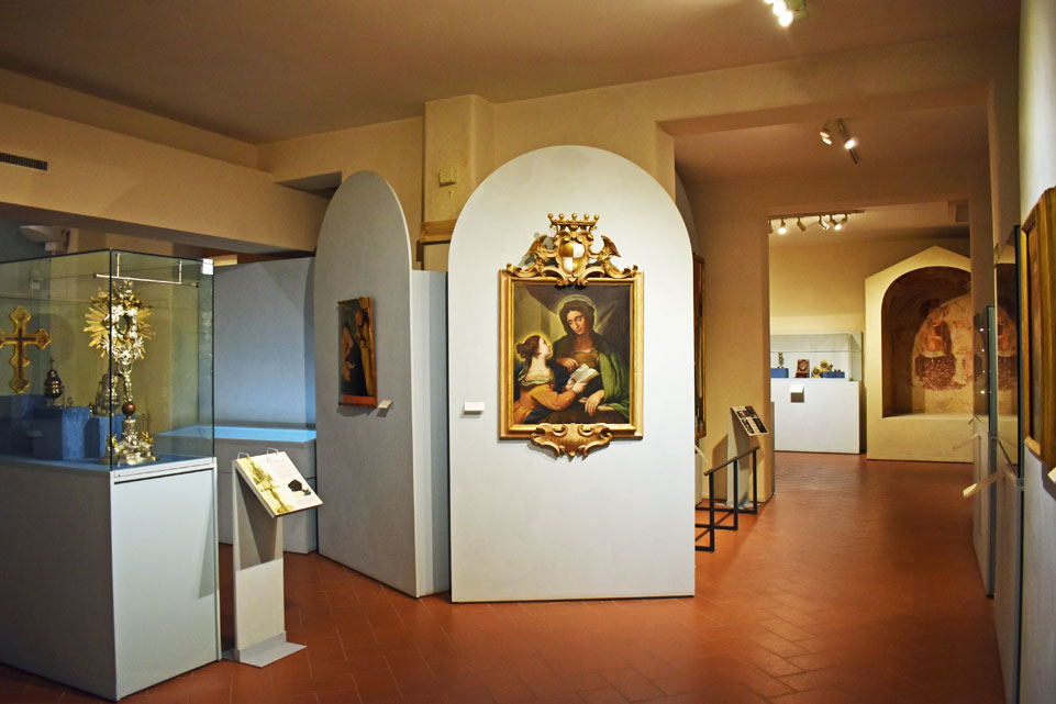 Sala 1 – Arte e devozioni nel Mugello – La dispersione del patrimonio – Furti e recuperi – Le pievi del Mugello Sala 2 – Le pievi del Mugello Sala 3 – Tabernacoli e processioni. Compagnie e confraternite religiose Sala 4 – Lo studio del pievano Sala 5 – Patronati e committenze Sala 6 – Arredi liturgici e paramenti sacri Sala 7 – Chiese e devozioni nel Mugello