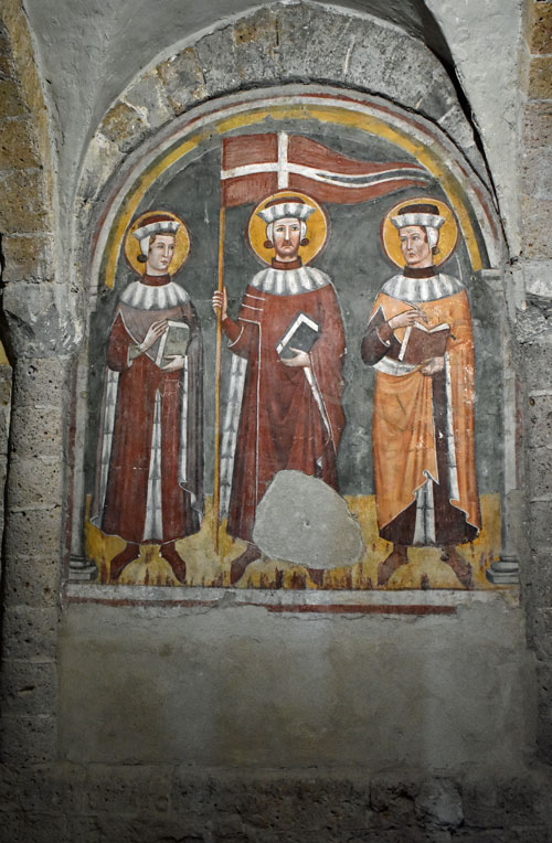 Sorta sull’omonimo colle sede dell’acropoli etrusca di Tuscania, affonda le proprie origini nell’VIII secolo con rifacimenti successivi che si collocano tra l’XI e il XIII secolo periodo cui si deve la facciata di matrice umbra ricca di simbologie: il grande rosone, simbolo della Trinità e di Dio al centro dell’universo raffigurata da tre cerchi concentrici inscritti in un quadrato con agli angoli i quattro evangelisti. A destra e a sinistra del grande rosone il Bene e il Male: a sinistra raffigurato da Atlante che sorregge la Chiesa con intrecci circolari grandi e piccoli che contengono figure simboliche, due angeli, l’Agnus dei, e i Padri della Chiesa in quelli grandi, figure allegoriche nei piccoli; a destra un demone con serpenti tra le braccia e tra gli intrecci sirene e arpie mentre un altro demone a tre facce ingoia i girali della vegetazione. Ingentiliscono la composizione due snelle bifore il cui motivo è ripreso in basso nella loggia con undici arcatelle lateralmente alla quale, a destra e sinistra, due grifoni alati stringono tra gli artigli una preda. Il portale centrale consta di tre archivolti su colonne: l’archivolto maggiore è decorato con tarsie con raffigurazioni dei segni zodiacali e dei lavori stagionali, il tutto incorniciato da una lastra marmorea decorata a mosaico e sovrastata da una lunetta con motivi stellari.