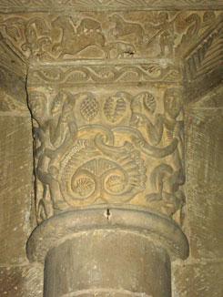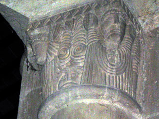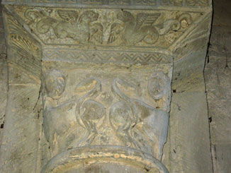 Si accede all’interno della pieve scendendo alcuni gradini e si viene subito colpiti dai possenti pilastri a fascio che separano la navata centrale dalle laterali, ornati da capitelli a motivi decorativi diversi: palmette, figure umane oranti, figure zoomorfe.