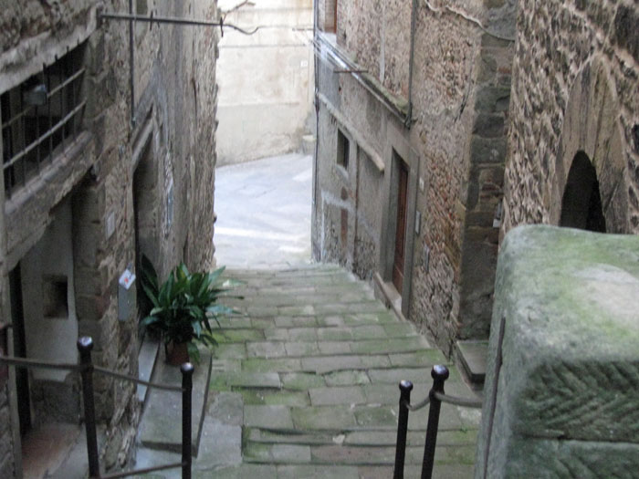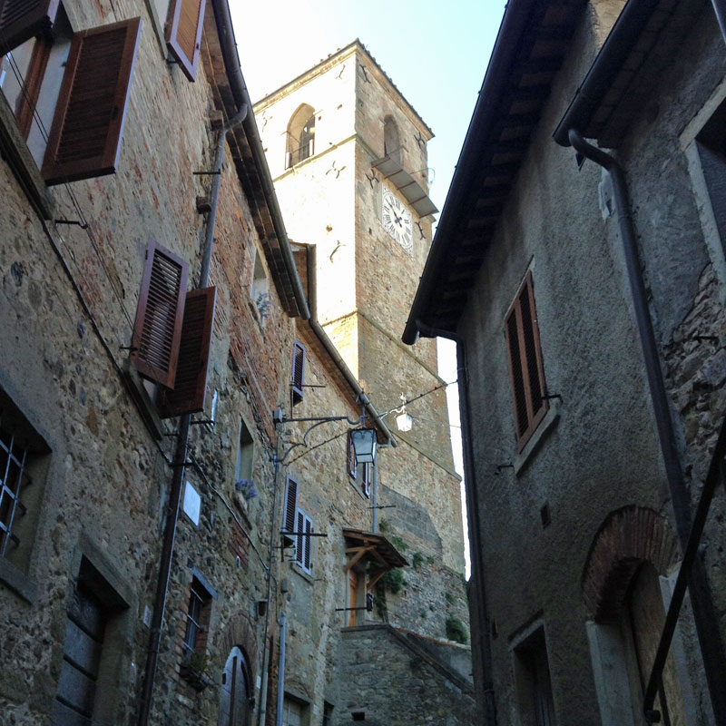 Strette strade e scalinate con antiche costruzioni in pietra accompagnano il visitatore offrendogli scorci pittoreschi tra slarghi, piazzette arcate e vicoli fino alla torre dell’Orologio detta Campano iniziata nel 1234: il nome le deriva dalla presenza di una campana proveniente dal castello di Montauto come ricorda l’iscrizione che reca incisa.