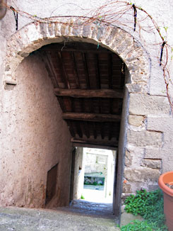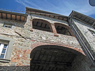 Ci fermiamo sulla piazza del Municipio. L’abitato qui nei pressi è in ristrutturazione per importanti lavori di ripristino. Ci avviamo verso stradette o meglio scalinate di pietra: il borgo è tutto un sali e scendi, a seconda del verso di marcia del visitatore. Scorci fioriti, chiassi e archetti rosseggianti in laterizio e palazzi e campanili. Più in basso, la bella torre campanaria, sicuramente una torre di avvistamento, della chiesa parrocchiale in terziere Piazzanello, così come il capoluogo è suddiviso amministrativamente con Villabona e Poggio, della chiesa parrocchiale di San Pietro e Paolo; salendo il palazzo municipale e il complesso della chiesa del Carmine.