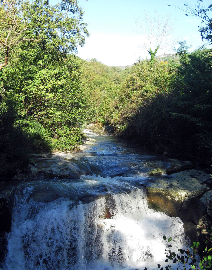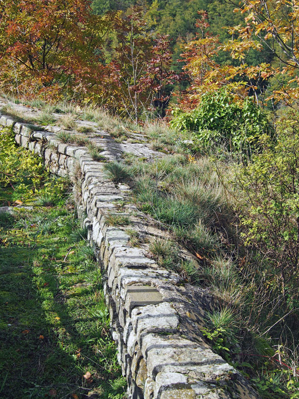Oggi non piove e il paesaggio che ci circonda è pieno di luce e il bosco, prevalentemente a castagno, che ci accoglie ai margini della strada verso la Rocca, è affascinante nei suoi colori autunnali accompagnati, come sottofondo, dal chiassoso scorrere delle limpide e spumeggianti acque del Ciuffenna.