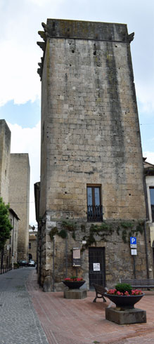 Entriamo così nella suggestiva via delle Torri che deve il suo nome proprio al susseguirsi lungo di essa di una serie di costruzioni a pianta quadrangolare che massicce si levano lungo la stretta via.