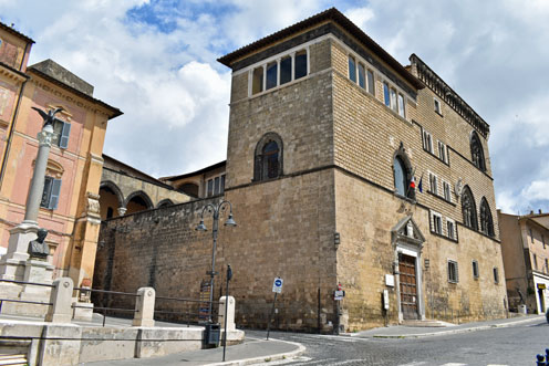 Più avanti il palazzo Vitelleschi realizzato tra il 1436 ed il 1439 su commissione del cardinale omonimo: nella facciata elementi gotici ed elementi rinascimentali; l’impronta rinascimentale è evidente nel settore a sinistra, col portale sormontato dal timpano triangolare in cui è inserito lo stemma della famiglia, le coppie di bifore e le tre trifore riportano al gotico.