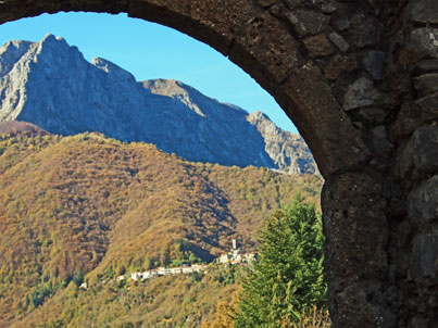 Ed eccoci ad ammirare la bella cerchia di monti che si abbracciano volgendo lo sguardo a semicerchio: in alto le loro guglie aguzze si perdono nel blu mentre in basso le pendici pedemontane si vestono dei colori dell’autunno: la Roccandagia, la Tambura, il monte Fiocca.
